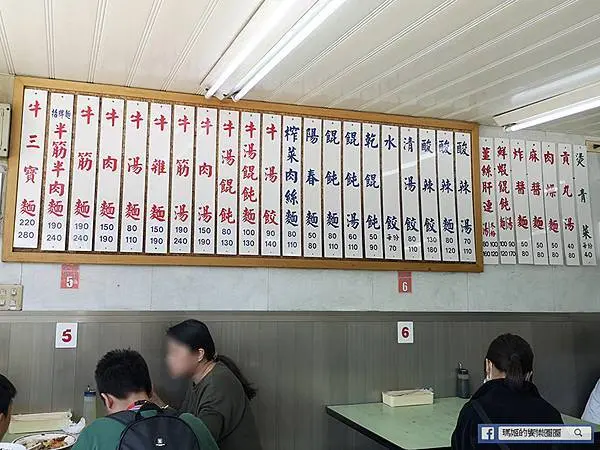 菜單有湯麵、乾麵、水餃和湯類四大類,搭配部份小菜。