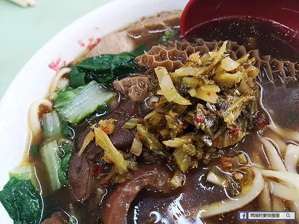吃牛肉麵加酸菜是必須的,酸菜放入湯裡鹹度和辣度都中和了不少,單吃會比較鹹辣哦!