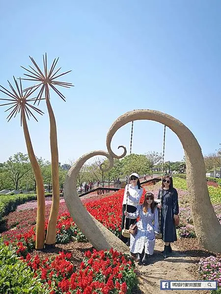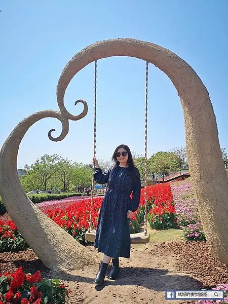 這愛心鞦韆造型不呆板,背後又有大片繽紛花海為背景,設計得很好。