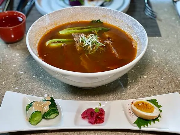 湯頭偏蕃茄牛肉湯底,有著微甜口感,