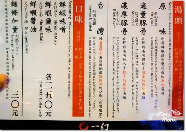這次我們點的是三種不同湯頭不同口味的拉麵囉,價位都一樣是250元,