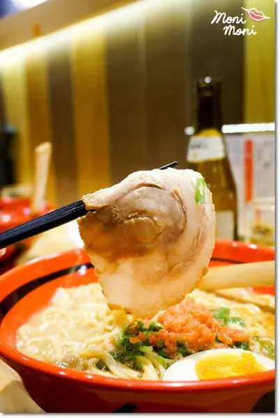 拉麵的基本擺盤就是一片叉燒肉一顆糖心蛋,以及上面的重點-蝦味面酥。