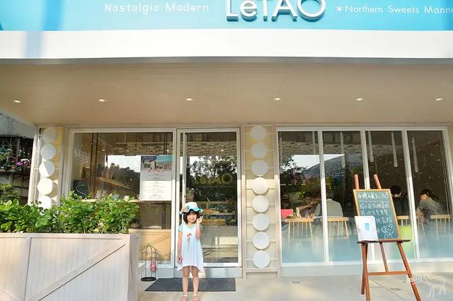 LeTAO咖啡館的位置就在好滴咖啡 Drip Cafe旁,水藍色系的招牌與色調明亮的木質細裝潢,好有夏日感。正巧蕾蕾這天也穿了藍與白色的配色,這樣一拍,有點像日本咖啡館的味道。