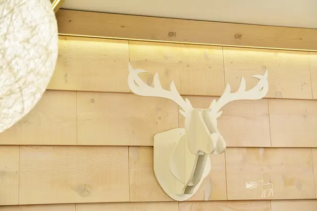 剛好坐在鹿的燈飾下方,覺得很開心!