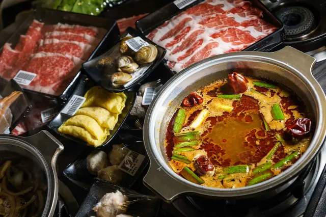 火鍋是一人一鍋,所以兩個人用餐也可以選不同湯底。我們分別挑選新推出的麻辣鍋及壽喜燒。