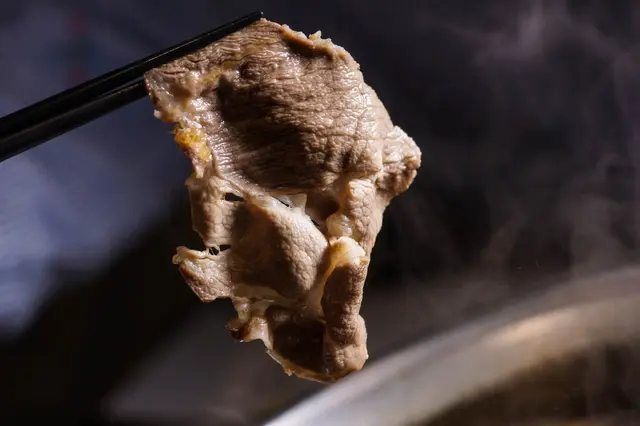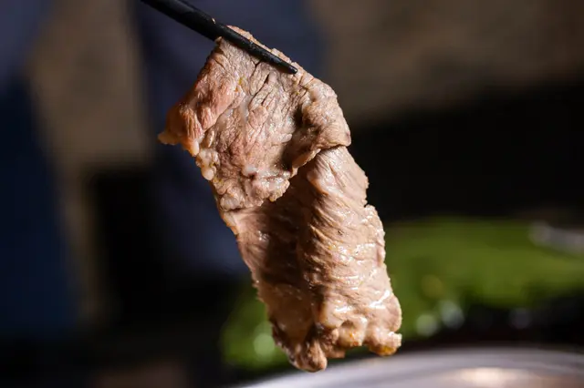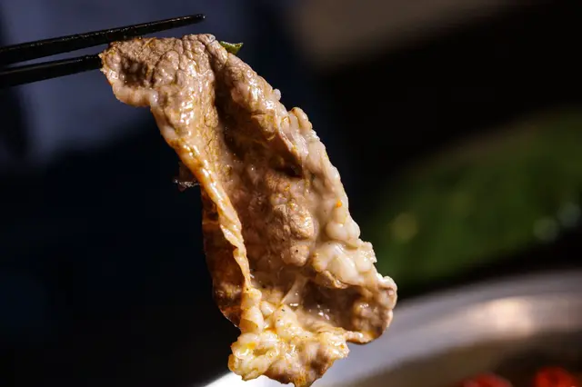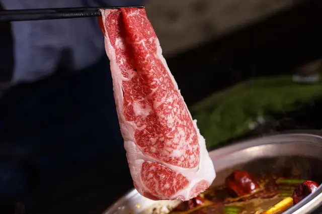 好的牛肉涮至七分熟就可以享用了!和牛好嫩,在口味較重的麻辣湯頭涮煮,還是能感受到牛肉本身的韻味,短角和牛在和牛屆裡算比較偏瘦的,因此油花看似很多,品嚐起來卻不會太過頭,是種微妙的油花感。