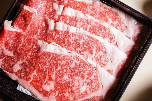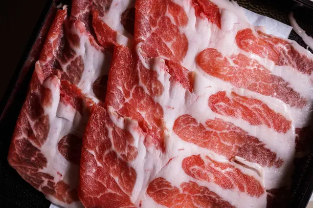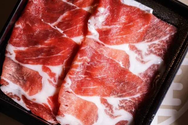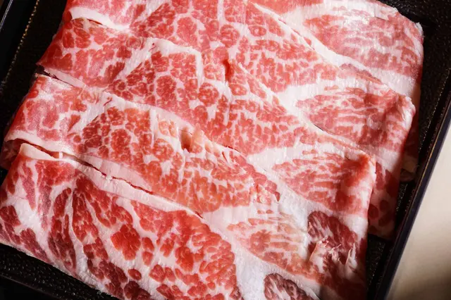 以外觀來說,伊比利豬油花最為豐富,不過涮煮起來倒不會太過油。