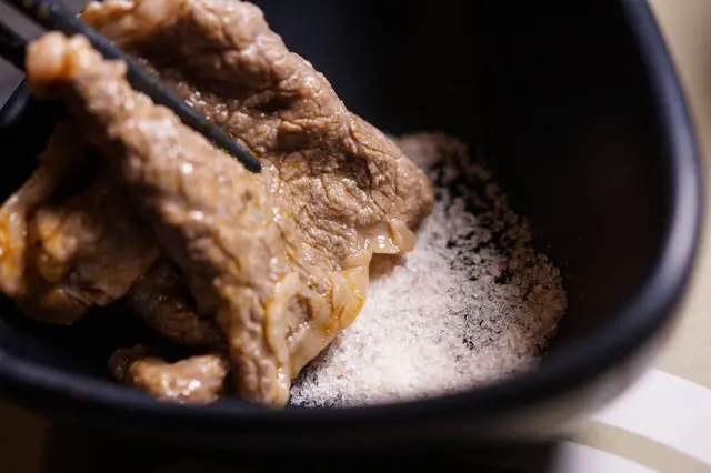 瞧瞧這油花及粉潤色澤,實在是太犯規了~~一份有四大片,並且有著一定的厚度,店家說每種肉品都有完美入口的厚度,他們不會故意切得很薄增加視覺份量,而是提供帶有點厚度的恰好厚度,讓每款肉品給用餐者的口感都是最佳的。