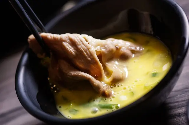 壽喜燒就是要搭配生雞蛋沾醬!建議可以點一顆生雞蛋做為沾醬喔!