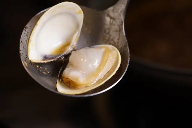蛤蠣推薦必點,非常鮮美,仔細一看原來還是活的。一煮開就可以吃,此時蛤蠣肉彭滿的剛好並且有著鮮美汁液。