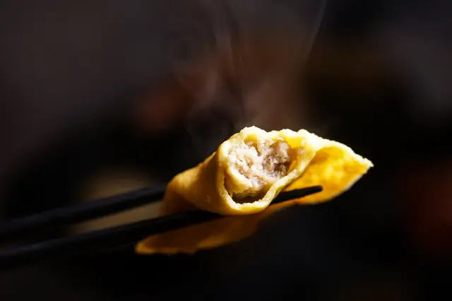 蛋皮有煎過的色澤及淡淡的香氣,內餡豬肉香油香氣重。