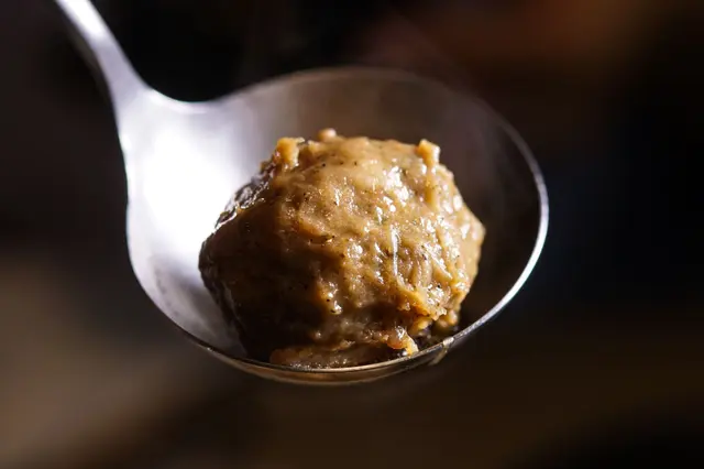 純牛肉加上黑胡椒、蔥花製成,小小彈牙,黑胡椒香氣提味。