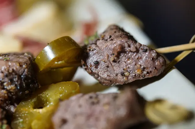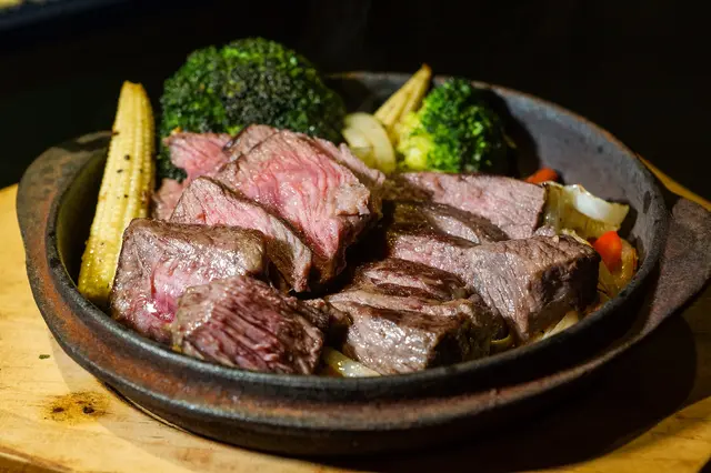 骰牛塊簡單地以黑胡椒調味,口感富有嚼勁,搭配上微辣微酸的墨西哥辣椒爽勁十足