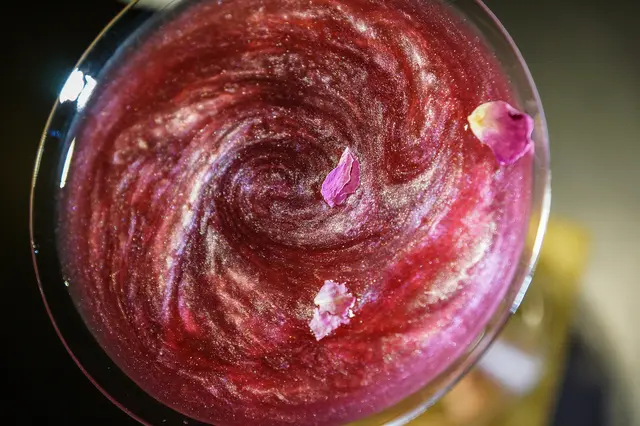 如星空般的閃閃發亮,實在是美得不像話,搭配上蔓越梅的色澤,肯定是杯會令少女尖叫的調酒XD