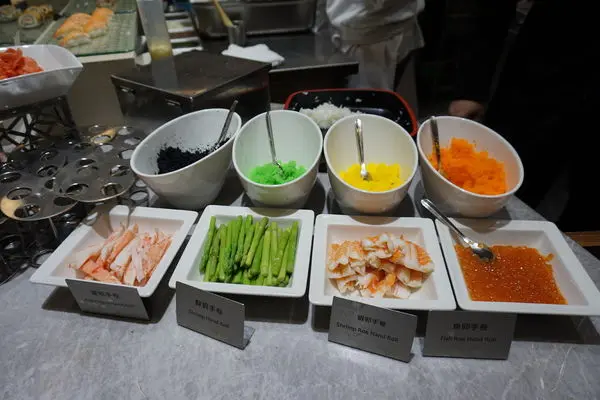 另外還有提供現做手捲~有魚卵、鮮蝦、蘆筍和蟹肉可供選擇。