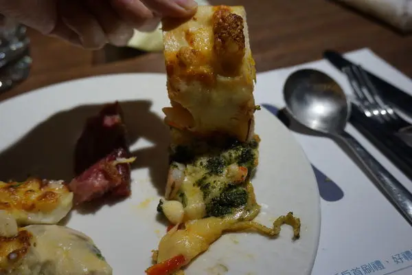 焗烤海鮮誠意十足,餡料有九孔類、貝類和蝦子們,而且起司鹹度剛剛好,