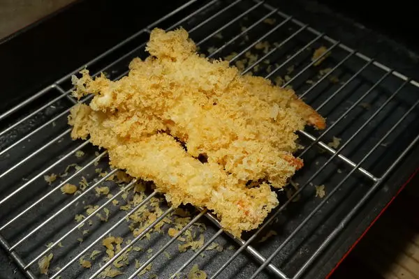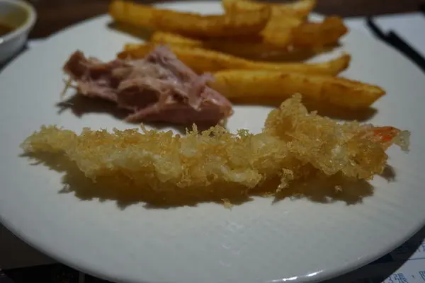 炸蝦外層麵衣裹附的不會很厚,但炸蝦本身其實蠻小隻耶,吃起來稍弱