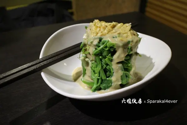 龍鬚菜川燙好後灑上胡麻醬,頂端撒上脆脆的花生,味道很獨特也很清爽。