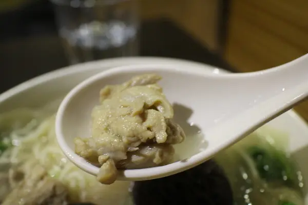 雞湯作為湯底,是三碗中最為清淡的,雞湯的精華在香菇的提點下,更加淡雅。