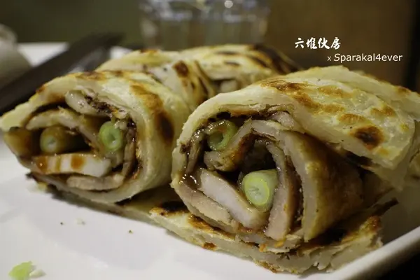 豬肉捲餅內配上裏頭的大蔥與甜麵醬,像是北方的捲餅類料理,很好吃。