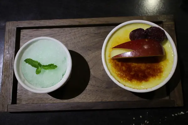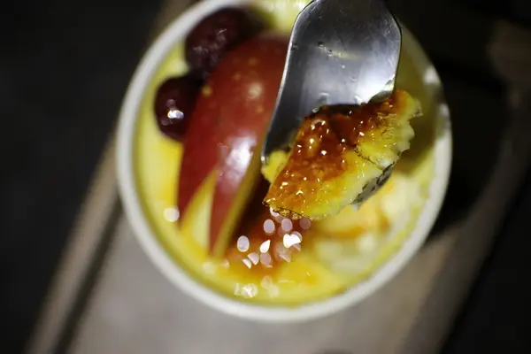 焦糖炙烤得正脆,用湯匙輕敲,淡淡苦甜味。配上一旁的檸檬冰沙,超級冰火交融。