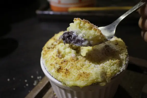 以西谷米與紅豆作為布丁的餡,上面撒上帕馬森起司粉,鹹甜鹹甜層次豐富,超喜歡的。