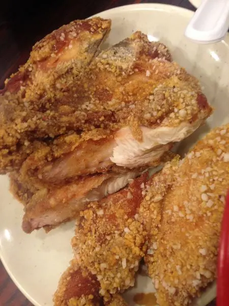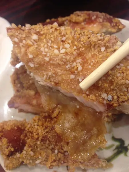 那罪惡的皮~沒有很厚~且詐的超酥脆的!!它的特製粉皮有點香香的味道!裡面的雞肉很軟嫩糾吸~