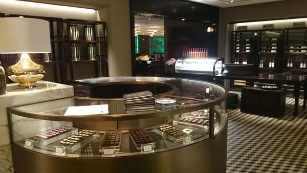 入口處另有一環狀的「茶古力」陳列櫃,後面則是茶葉的陳列牆。