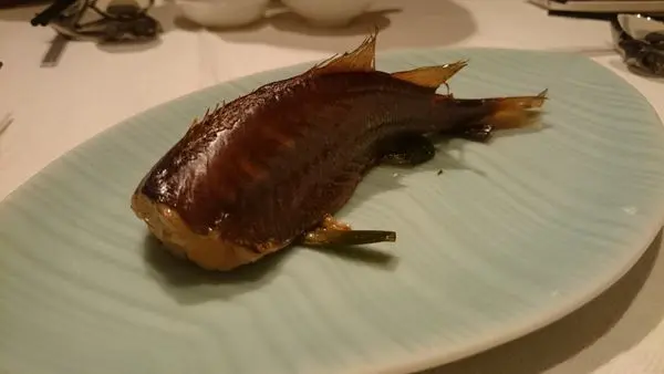 幫我們點菜的魏經理是從香港過來支援的,問他有沒有特別推薦的冷菜,他說他推薦煙燻小黃魚和烤麩,烤麩常吃,所以我們選了小黃魚。