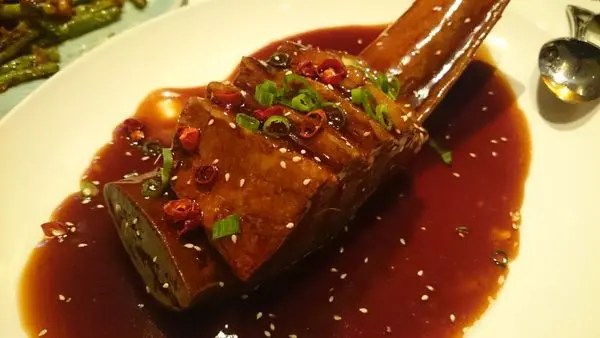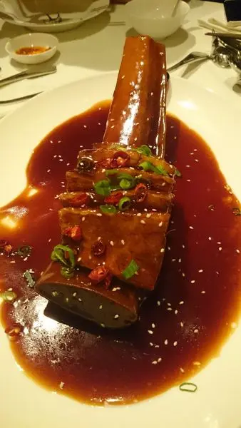 選用美國PRIME級牛肉,肉質肯定沒話說,紅燒醬汁的色澤很美麗,肉燒得很入味,擺盤也挺有氣勢,稱得上是色香味俱全。