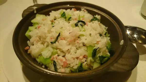 米粒分明,淡淡的菜香,是清爽口味的菜飯,適合搭配其他重口味食物吃。