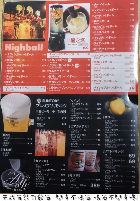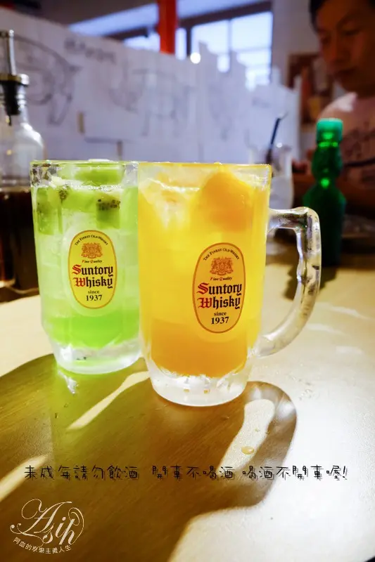 他的後進比較強~因為使用三得利Suntory 威士忌加上碳酸飲料或果汁特製而成的調酒!