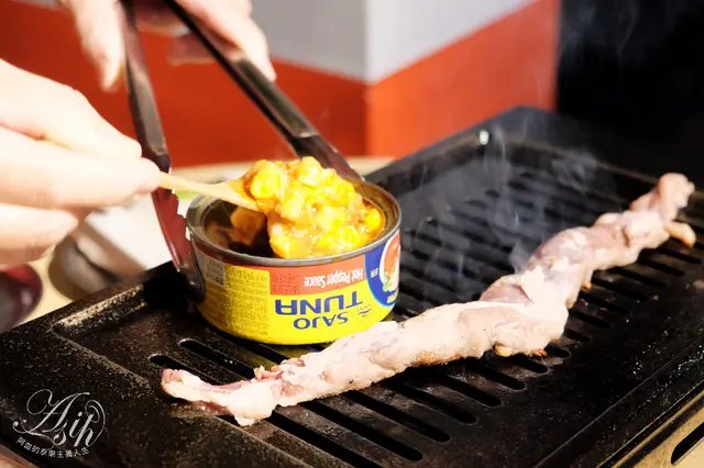 首先在鐵盤烤的就是這個韓國辣味金槍魚罐頭,上面還灑一堆起司~~(尖叫)