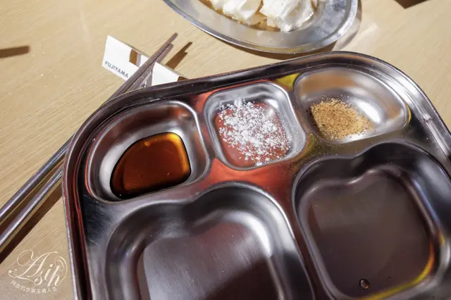 或者沾上他們店內的三種佐料:特製醬、日本雪鹽、富士山龍特製龍粉末(有點像七味粉的概念!很香)