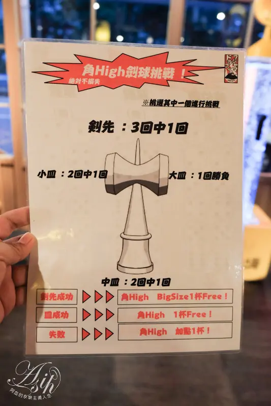 劍玉或骰子只要通過遊戲就可獲得店內招待喔!