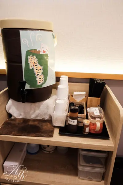 另外,還有免費的熱麥茶可以喝喔!這邊是自助區!