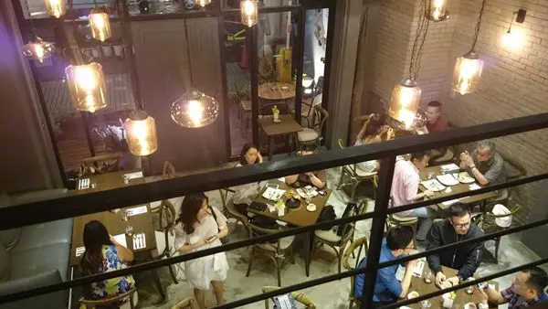 一樓的用餐空間其實不大,有一大桌,四、五個小桌,挑高設計,所以視覺上不會太擁擠。二樓大概也有將近30個座位。