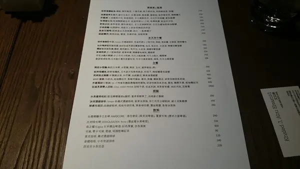 菜單就是一張簡單A4的紙,一方面是還在試營運的狀態,另一方面菜單也會定時更新,所以不需要一次做的太華麗。
