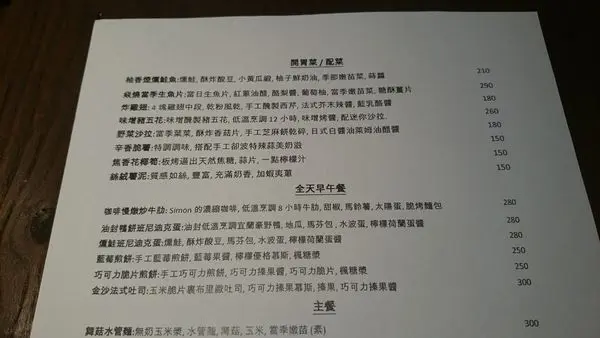 照片好像沒有拍的太清楚,不過價位大概都是NT$150~400之間,只有兩人份的牛排單價較高NT$1800。