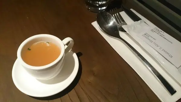 還沒點菜之前,先來一小杯雞湯,相當體貼喜歡熱食的亞洲胃呀,加分!!
