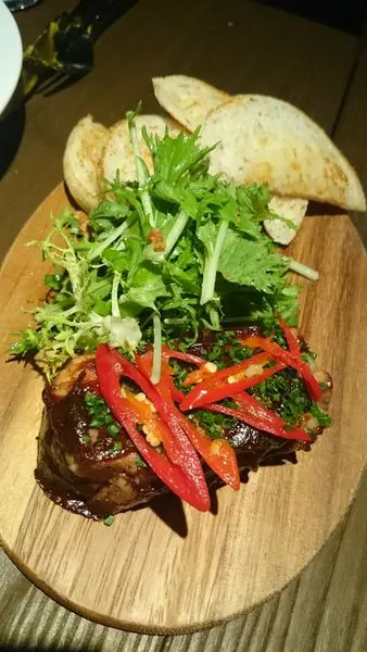 這道我也很喜歡,豬五花肉先醃8小時,低溫烹煮12小時後,再塗上味噌芥末醬進烤箱烤熟,表層酥香,內裡軟嫩,入口先是有香氣,然後油脂開始融化在嘴裡。哎呀呀~~好邪惡呀!!