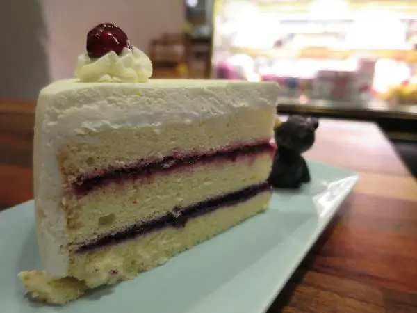 鮮奶油、戚風海綿蛋糕、雙層果醬最後再一顆果子