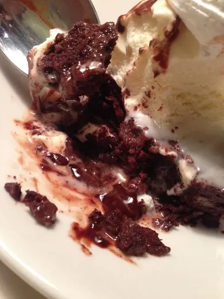 他的最上一球是奶油!中間那一球式香草冰淇淋~最下層是一塊布朗尼巧克力!