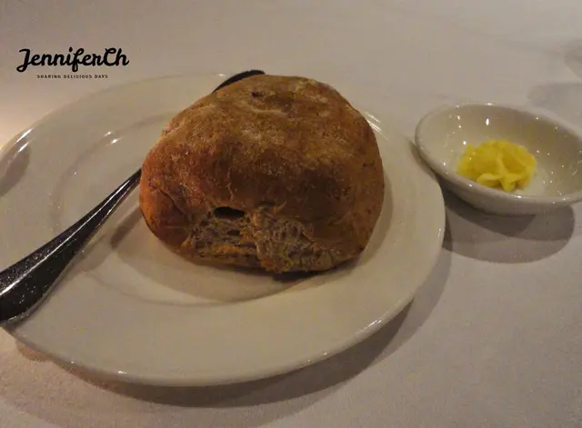 這是雜糧葡萄乾麵包,都會烤得熱熱的附上無鹽奶油。