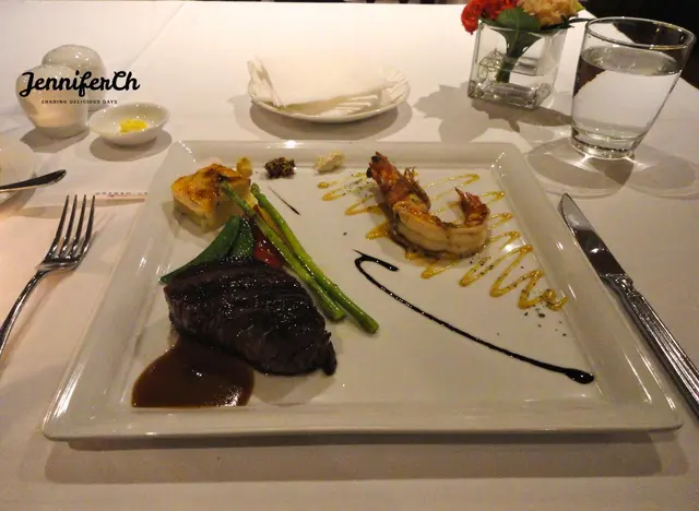 這次用的應該是午間套餐的牛排拼明蝦,牛排從紐約客換成菲力,另外開胃菜升等成干貝。