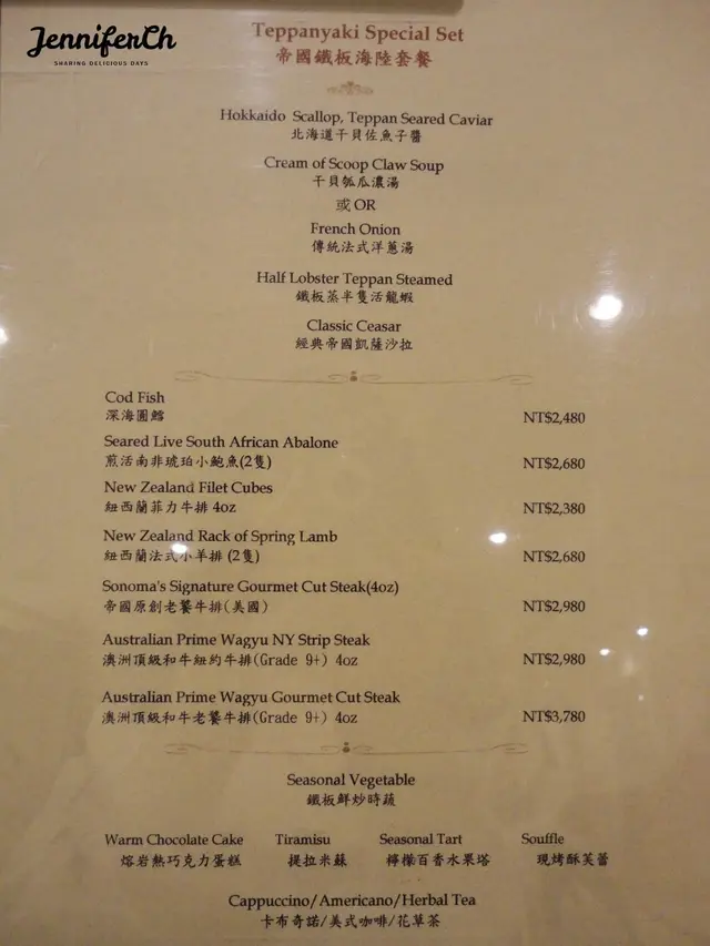 官網:Sonoma Grill 帝國牛排館