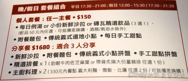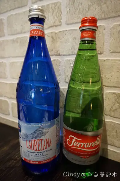 提供一般水(免費)及義大利汽泡水(90元/一瓶)