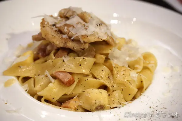白醬完全收乾包覆於麵上 是我們都很喜歡的口感~