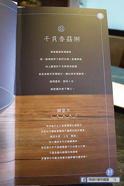 不少鍋物都會搭配煮個鍋底粥來做最後一道的精華,這裡煮的鍋底的干貝粥,其一秘密武器是來自花蓮的御皇米,縱谷地形與天然礦物質水源使御皇米擁有香Q口感。