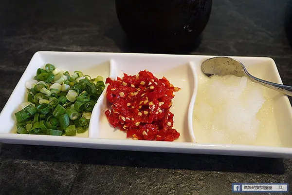 附的香辛料及白蘿蔔泥,可依個人喜好加入果醋中調和成沾醬。